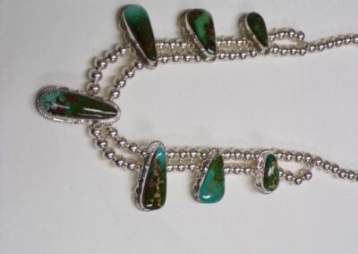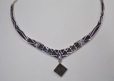 Joseph Coriz is a Native American Indian who was born into the Santo Domingo Pueblo in 1958. He was inspired to follow in the footsteps of his parents, who were very successful at making beautiful handmade jewelry, and Videl Aragon, who was known for his fine silversmith petroglyph designs. They taught him all the fundamentals of working with beads and raw silver at a very young age. Joseph absorbed each piece of information about the traditional hand crafted jewelry and eventually developed his own style. He combines traditional methods with his own unique contemporary flare creating primarily sterling silver designs. He creates beautiful masterpieces of fine jewelry and has become one of the finest master silversmiths of our time.