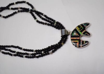 Josh Leki is a young Zuni Fetish carver who is a member of the renowned Teddy Weahkee family of traditional Zuni Pueblo carvers. Josh is a great grandson of Edna Leki and a grandson of Lena Boone. Lena has helped Josh learn the art of Zuni Fetish carving, and he follows in her footsteps by making striking figures from natural stones, as well as glass.